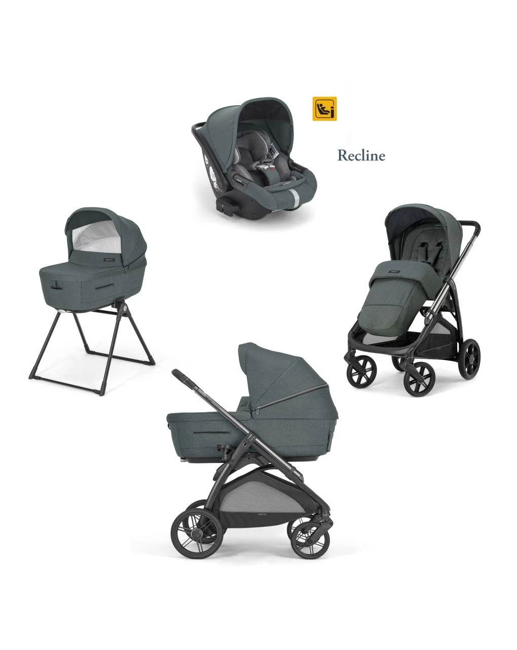 Aptica System Quattro Colore Emerald Green Con Seggiolino Auto Darwin Infant Recline + Telaio Litio – Inglesina