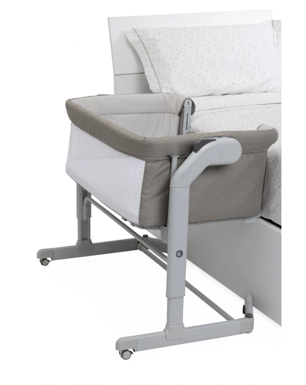 La culla è pratica da usare per i genitori grazie alla spondina scorrevole che si apre con una sola mano e alle