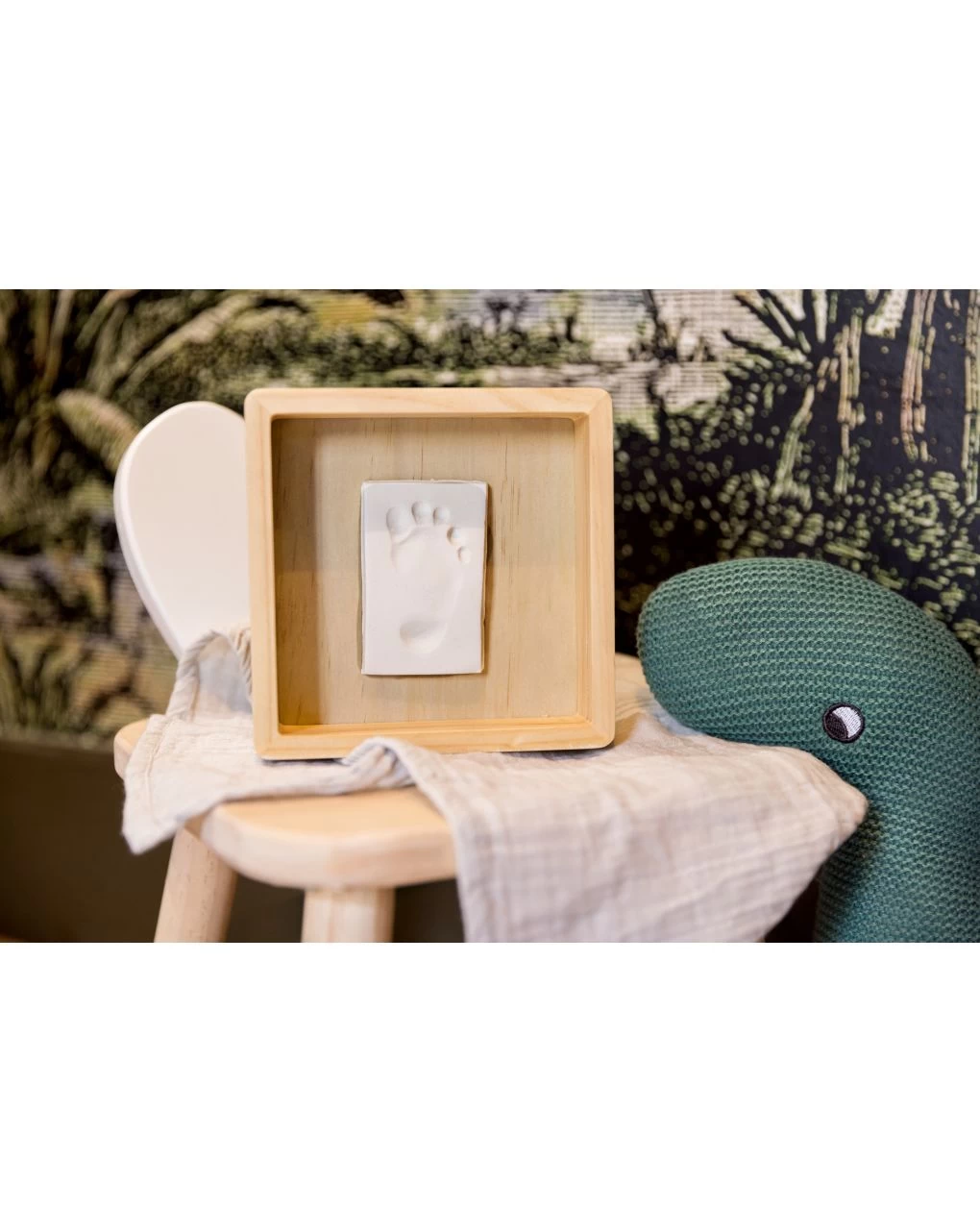 “Kit impronte neonato con base in legno per realizzare l’impronta di mani e piedi del neonato, comprende tutto il necessario: argilla organica e mattarello per stendere la pasta; ti servono solo 2 minuti. Per conservare più a lungo il calco ed evitare che si impolveri, custodiscilo al sicuro con la copertura trasparente che trovi inclusa nella confezione