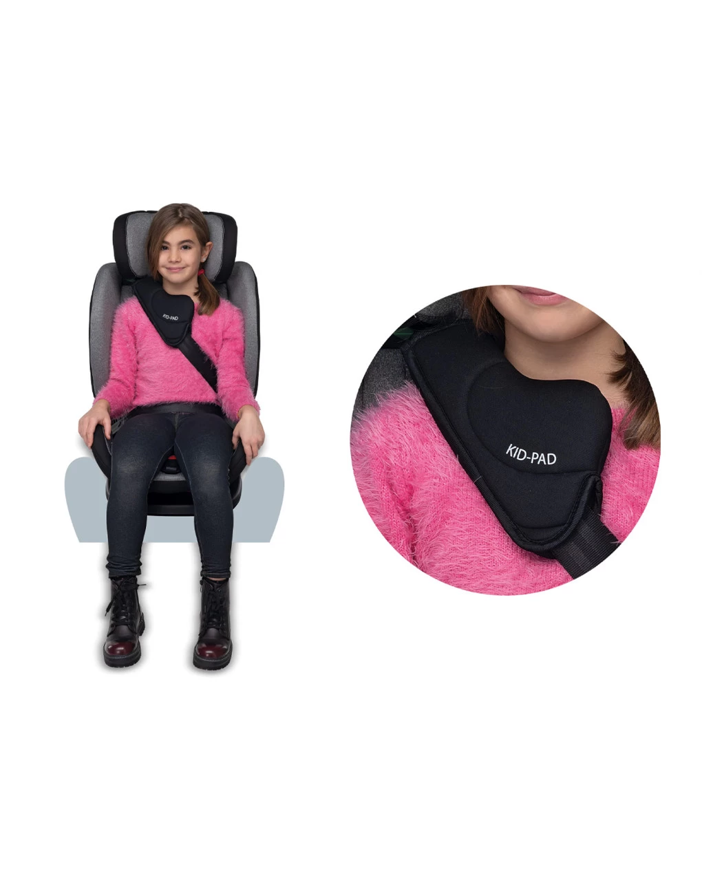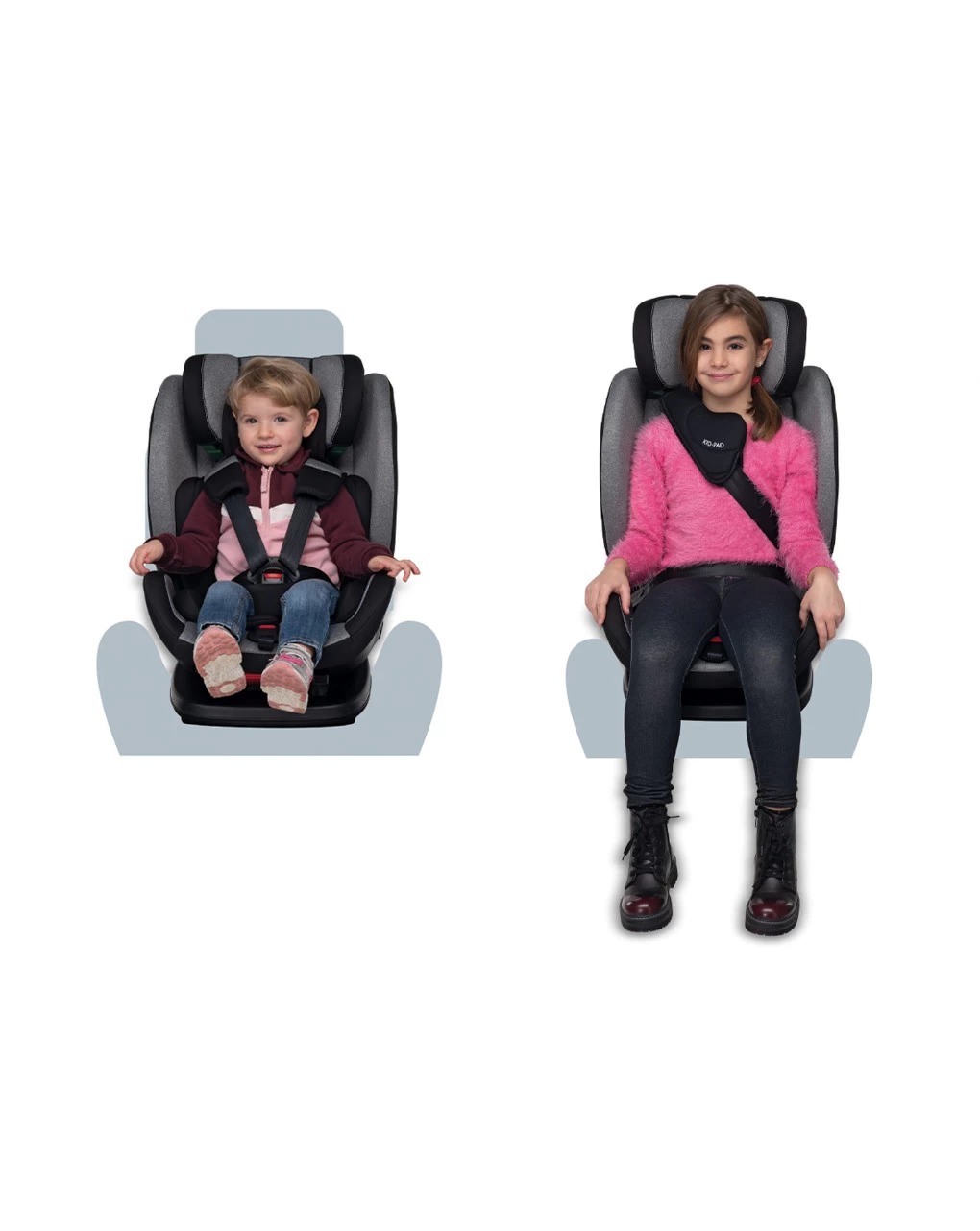 Da 100 a 150cm utilizzabile con aggancio Isofix oppure con cintura 3 punti del veicolo grazie alla doppia omologazione DUAL FIX. Ulteriore protezione integrata Comfort Kid Pad inclusa, utilizzabile dai 100cm di altezza del bambino. Conforme al regolamento europeo R129.