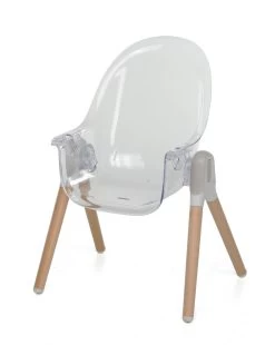 Seggiolone baby sedia 2 in 1. Utilizzabile come seggiolone da 6m a 15kg e come baby sedia da 3 anni a 25kg. Facilmente trasformabile. Gambe modulabili in legno massiccio di faggio, seduta reclinabile in metacrilato trasparente. Imbottitura ergonomica in tessuto effetto pelle.