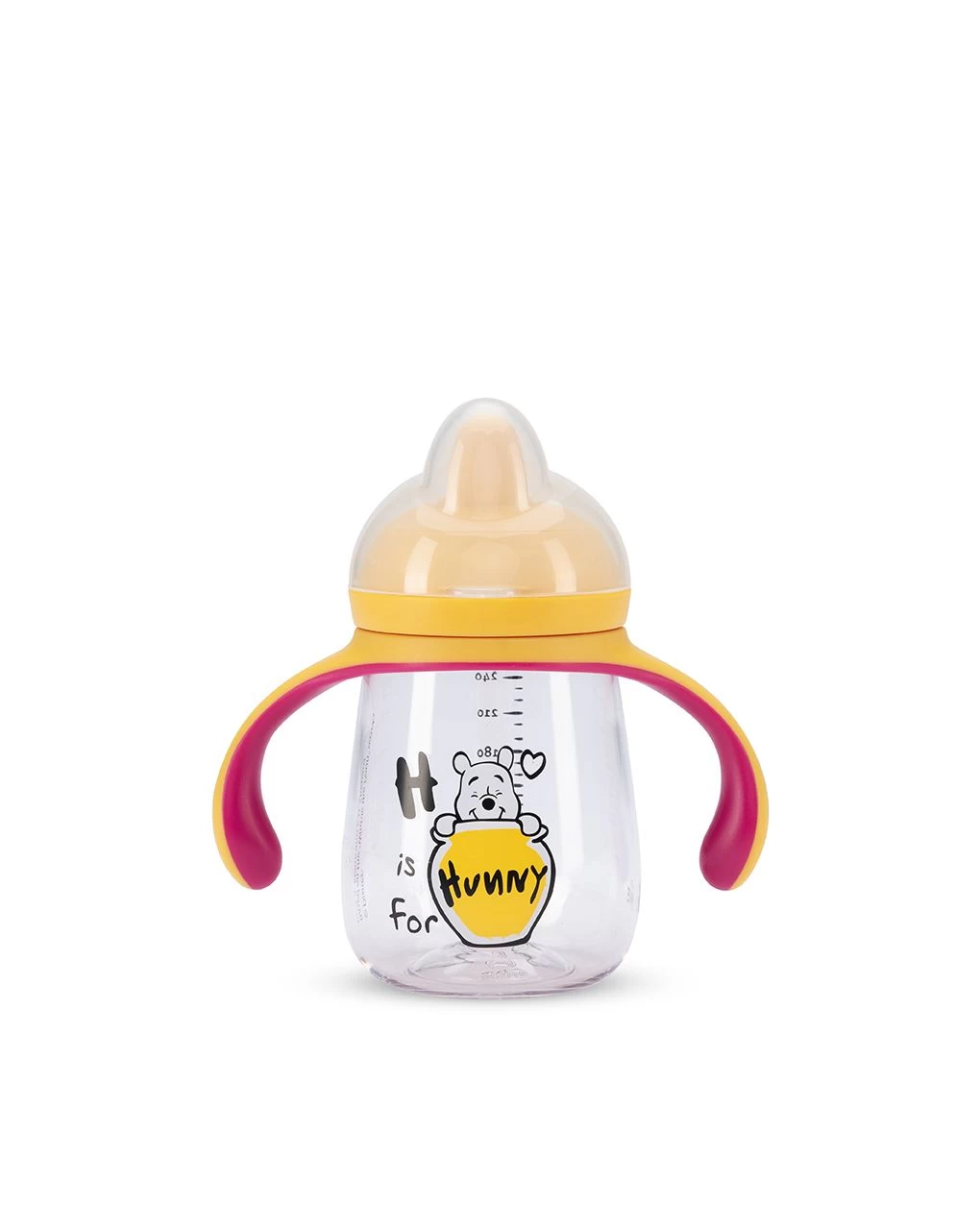 Innovativa tazza che aiuta il bambino a bere da solo. Il beccuccio morbido aiuta il passaggio dal biberon.