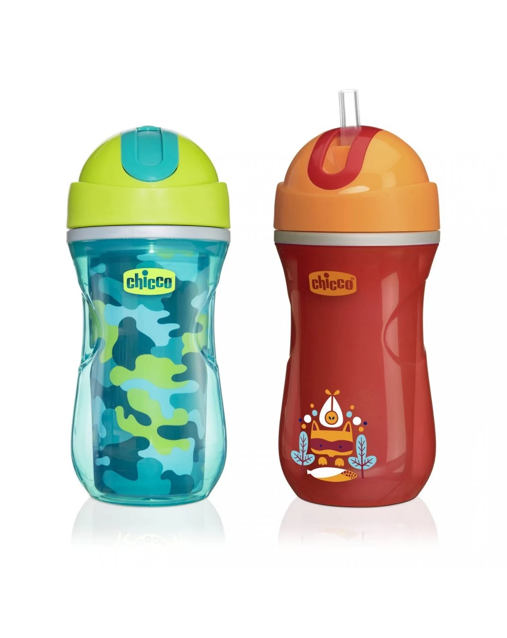 Tazza per bambini dai 14 mesi, ideale per essere utilizzata fuori casa, dotata di chiusura a scorrimento per mantenere la cannuccia pulita. Cannuccia in silicone, beccuccio resistente ai morsi e bottiglia isolante che mantiene la temperatura dei liquidi. Provvista di un sistema integrante anti-goccia.