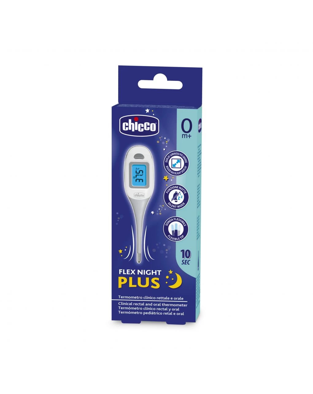 Il termometro Chicco Flex Night Plus ti permette di rilevare la temperatura del tuo bambino anche di notte, senza disturbare il suo sonno, grazie al pratico display luminoso e alla funzione notturna. La rivelazione è rapida e avviene in soli 10 secondi e la punta flessibile garantisce un elevato grado di comfort.